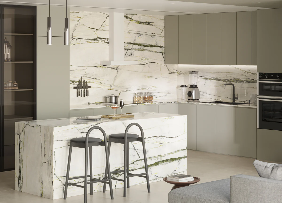 This Emerald Green Porcelain Slab is the perfect addition to any home or commercial space. With its stunning color and durable material, it will elevate the aesthetic and functionality of any surface it is placed on. Made from high-quality porcelain, this slab is not only beautiful but also long-lasting. Invest in this slab for a stylish and practical solution.
